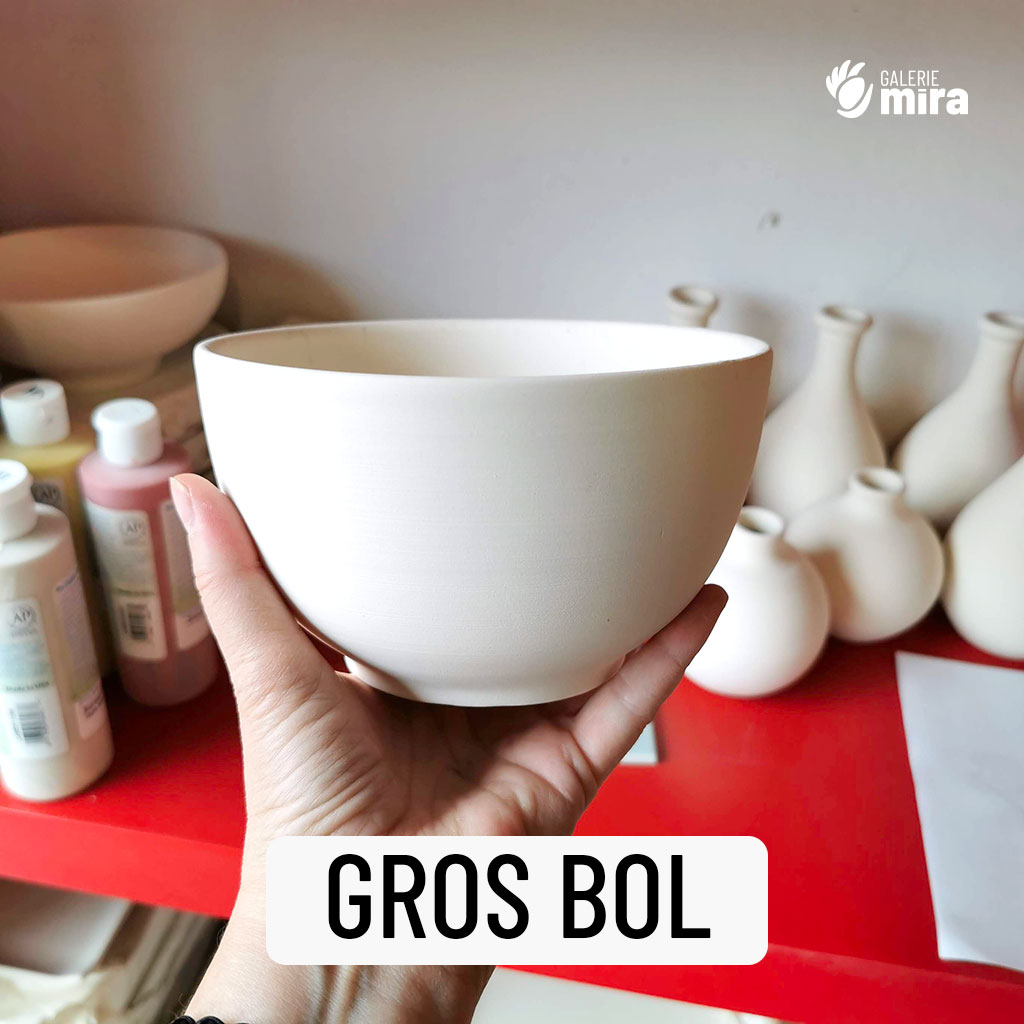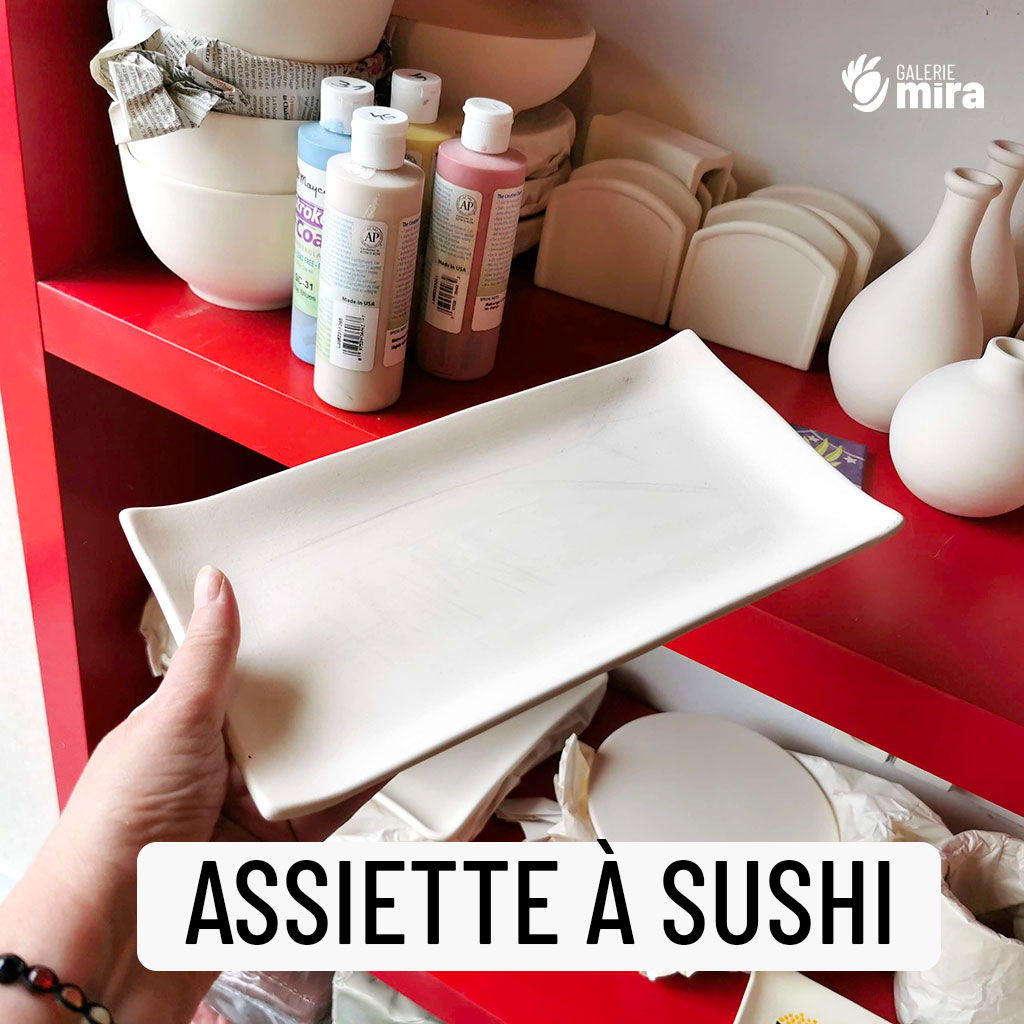 Vous choisissez un objet parmi un large choix : assiettes (plusieurs formes), bol, mugs (2 formes), pot à ustensiles, vases, cache-éponge, repose-cuillère, carreau…